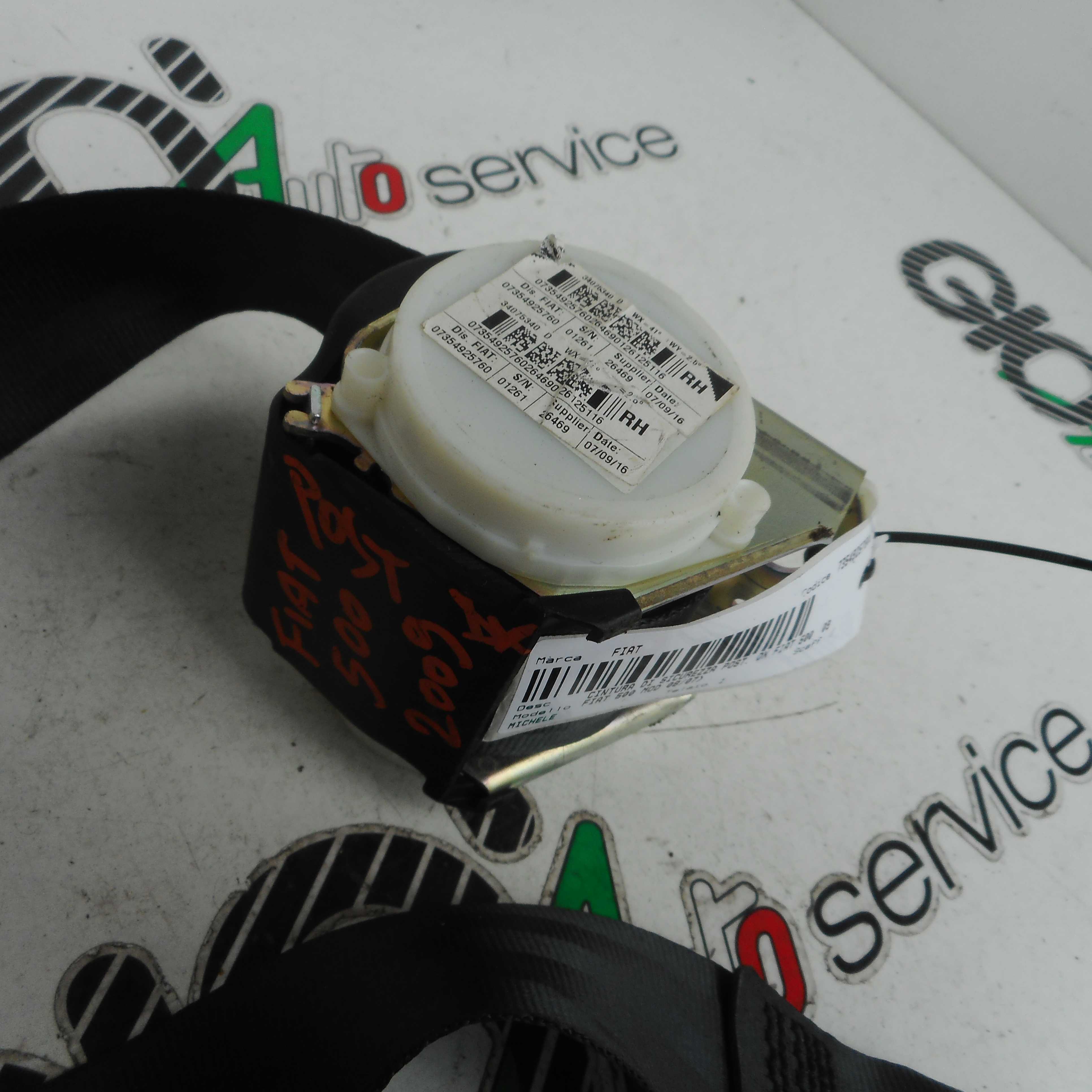 CINTURA DI SICUREZZA POSTERIORE DX FIAT 500 DAL 2007 AL 2015