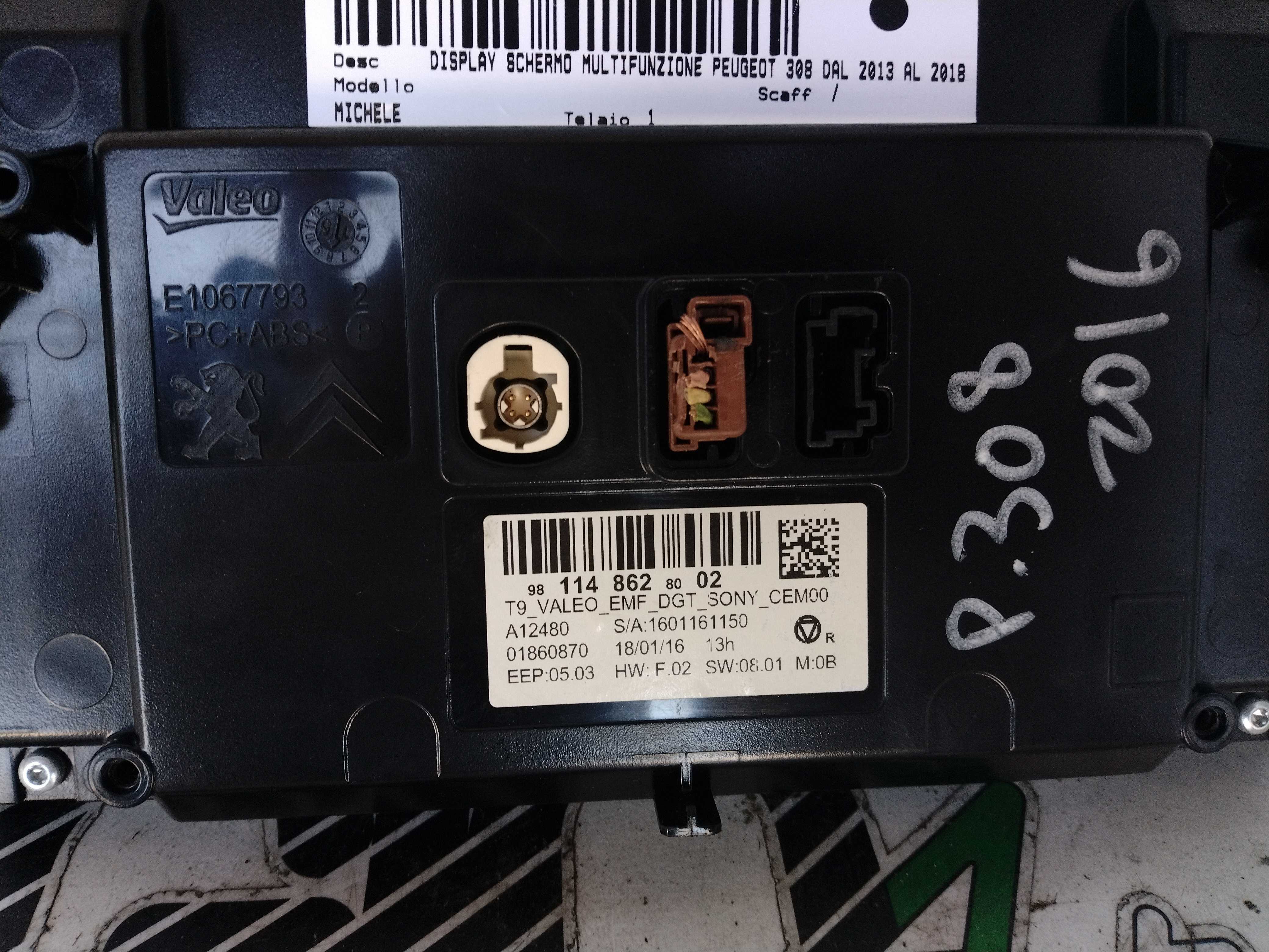 DISPLAY SCHERMO MULTIFUNZIONE PEUGEOT 308 DAL 2013 AL 2018